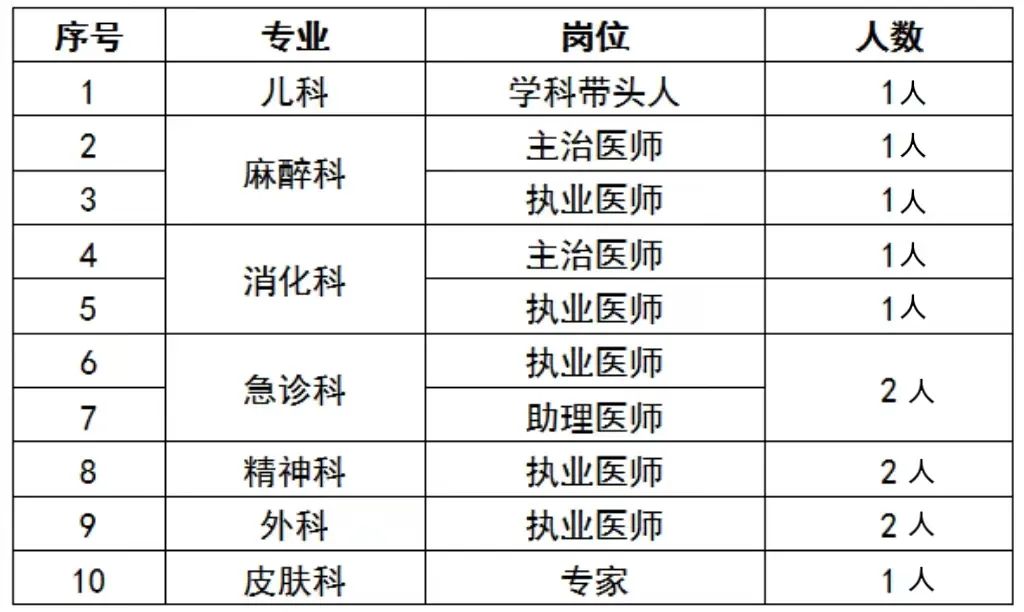 臨沂高新醫(yī)院因發(fā)展需要,現(xiàn)面向社會(huì)公開(kāi)招聘相關(guān)學(xué)科帶頭人、主治醫(yī)師、執(zhí)業(yè)醫(yī)師和執(zhí)業(yè)助理醫(yī)師,招聘崗位和條件如下:一、招聘崗位二、基