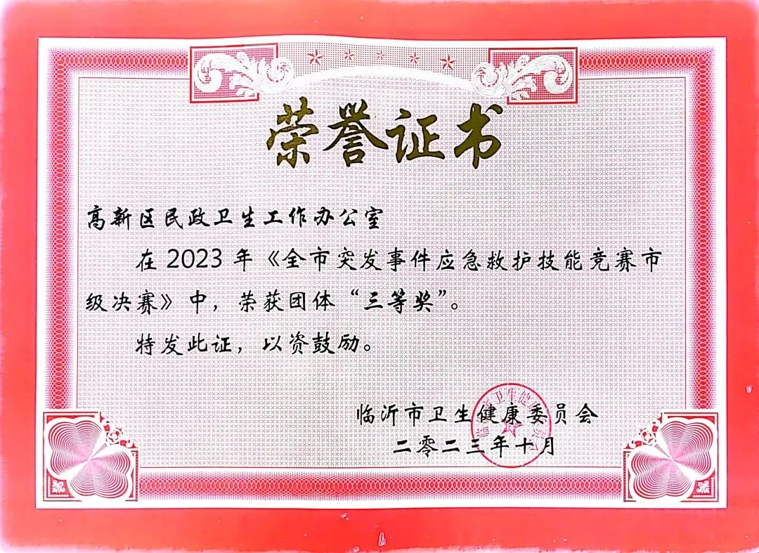 臨沂高新醫(yī)院在市突發(fā)事件應(yīng)急救護(hù)技能競(jìng)賽中獲得佳績(jī)!